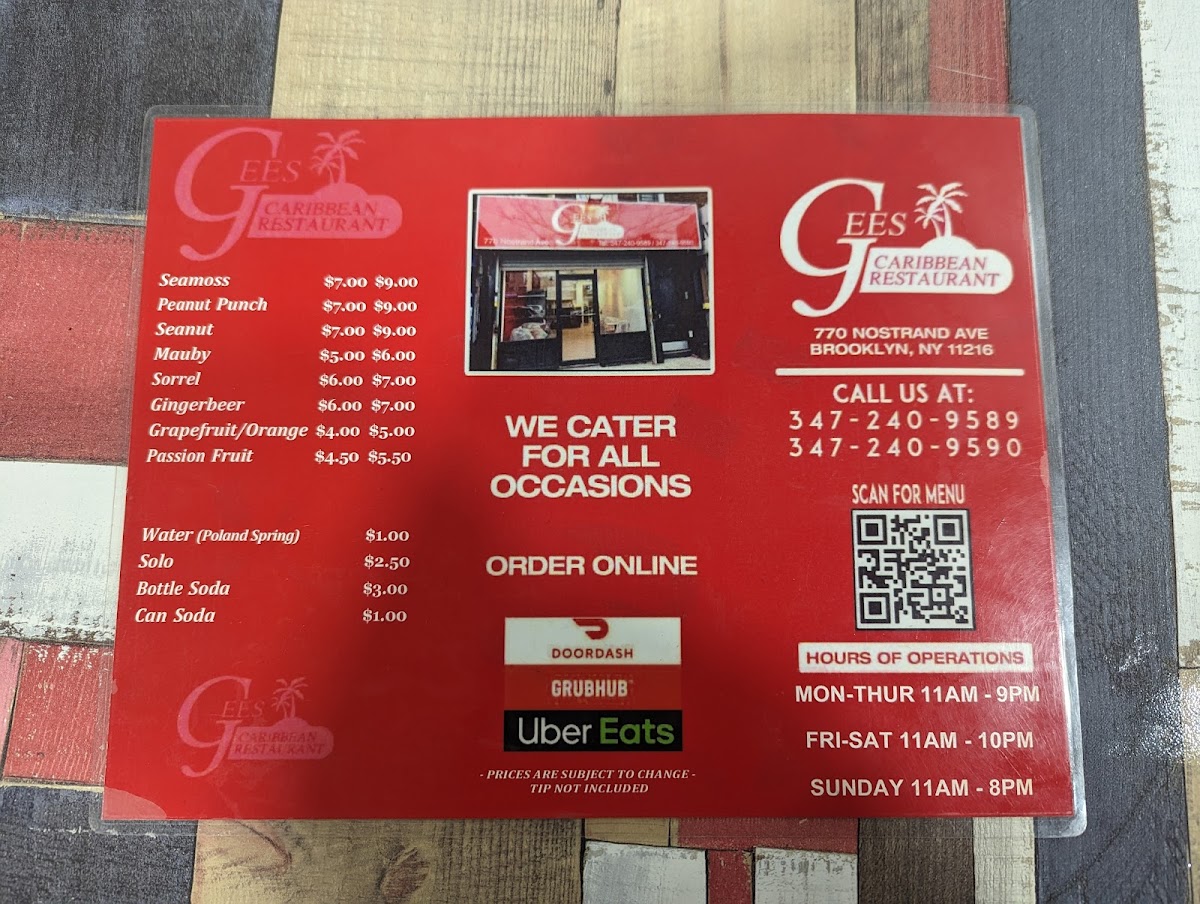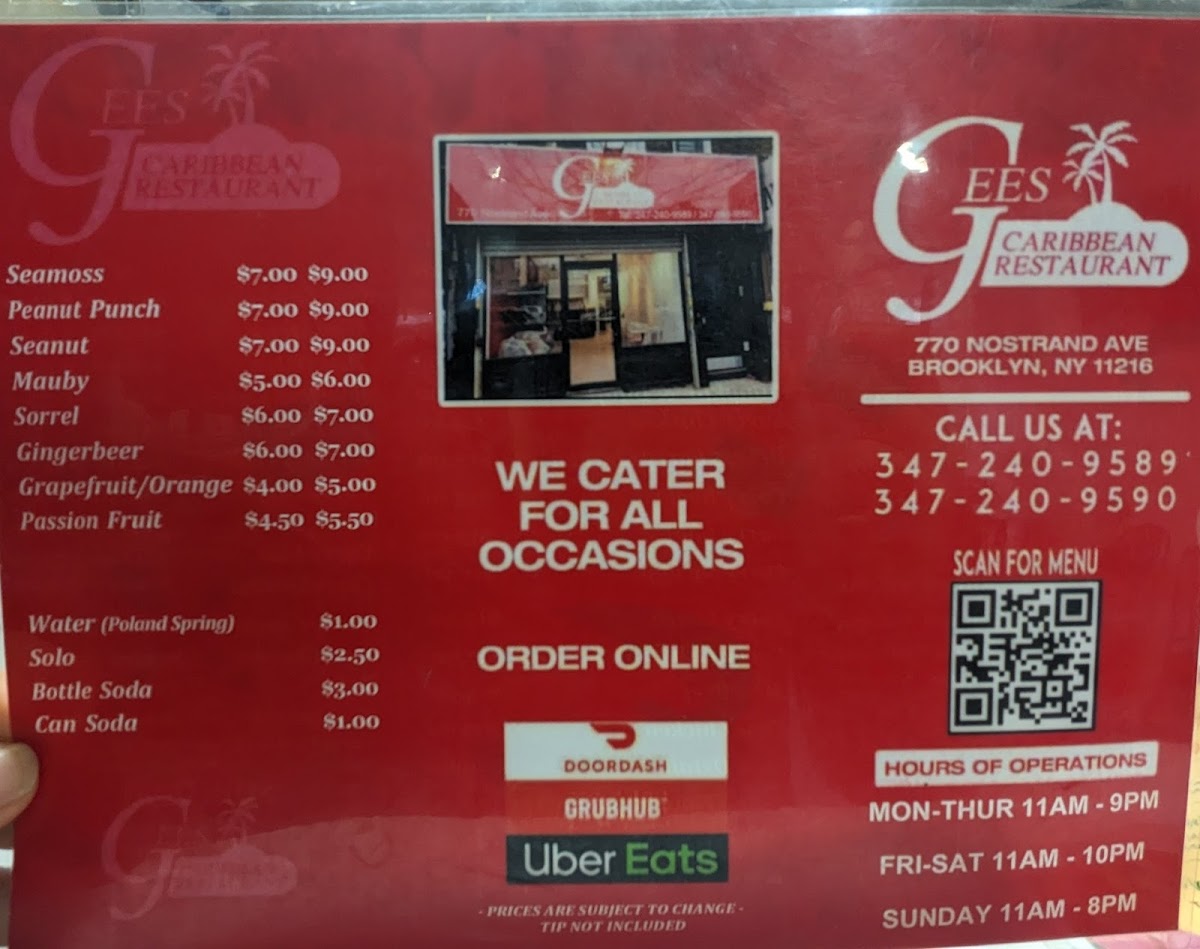 Welcome to Gee's Caribbean Restaurant, a hidden gem nestled at 770 Nostrand Ave in Brooklyn. This vibrant eatery brings the rich flavors of the Caribbean straight to your plate, showcasing a menu that's both diverse and delightful.